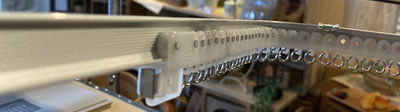 カーテンレールにも取付け可能なものとできないものがあります。可能なカーテンレールタイプは写真のようにコの字型をした断面のものです。