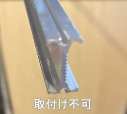 断面が写真のようなタイプのカーテンレールは取付け不可です。H型レールと呼ばれます。