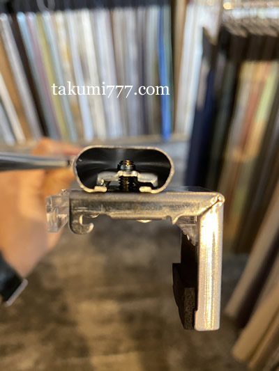 レールの中のランナーを抜いてこのカーテンレールビスのついたブラケットをセッティングします。