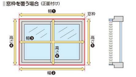 高さは窓枠の寸法以上で、ブラインドを上げた時にできるたたみ込み厚みを窓枠から逃がしたい時は下地のある範囲で上に取り付けます。