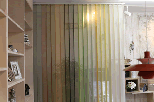 当店ではニチベイバーチカルブラインド・センターレーススタイル・バトン式の実機サンプルがあります。(使用生地はポポラ)実際に操作して、操作性や生地などをご確認いただけます。