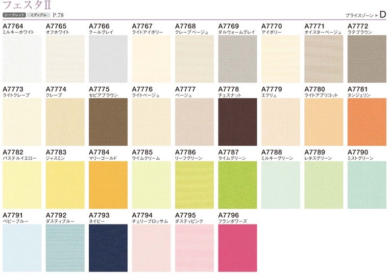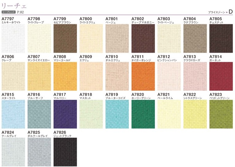 センターレーススタイル対応可能な生地は下記一覧表となります。