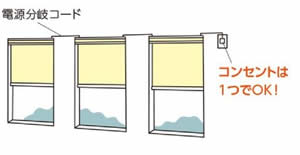 100Vのコンセントに差し込むだけでカンタン設置可能な住宅用ロールスクリーン。高窓や窓数の多い場合もリモコン1つで複数のロールスクリーンを開閉操作することが可能です。
