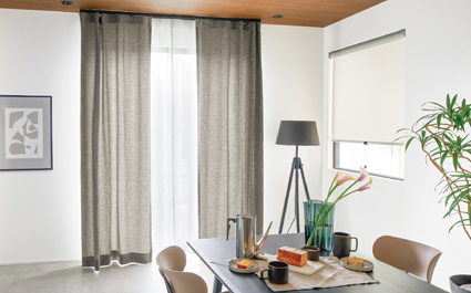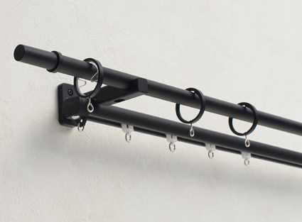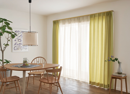 機能が豊富なカーテンボックスタイプのカーテンレール。通常のダブルレールのほか、カーテンの召し合わせ部分を重ねて光漏れを防ぐ交叉ダブルセット、カーテン+ローマンシェードやロールスクリーン、プリーツスクリーンなどと組み合わせることができるプラスダブルセットがあります。 |