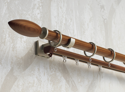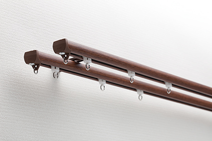 天然木を使用した上質・モダン・ハイグレードなカーテンレール。最も優れた静音ランナー使用(従来の約1/2)で、とにかく開け閉めの音が静かです。 |