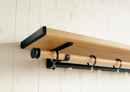 カーテンレールの上に棚を取付けできる画期的な商品です。小物やグリーンを置いてインテリアを有効活用できます。 |