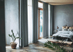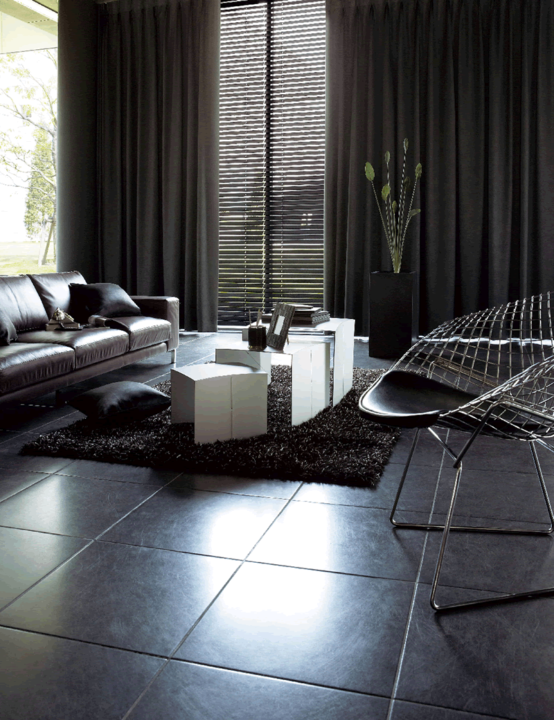 レザーの表情をもたせた遮光1級のカーテンです。エグゼクティブで上質なインテリアとマッチするダンディーなカーテンです。
