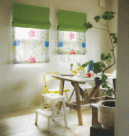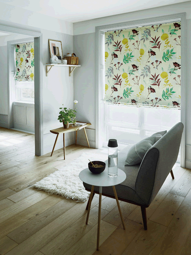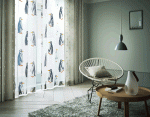 水彩タッチのカラフルで明るい色調の遮光カーテンです。レトロ・モダンな印象です。