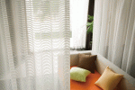 ナチュラルな風合いの糸を織り込んだ凹凸のあるモダンなシアーカーテンです。