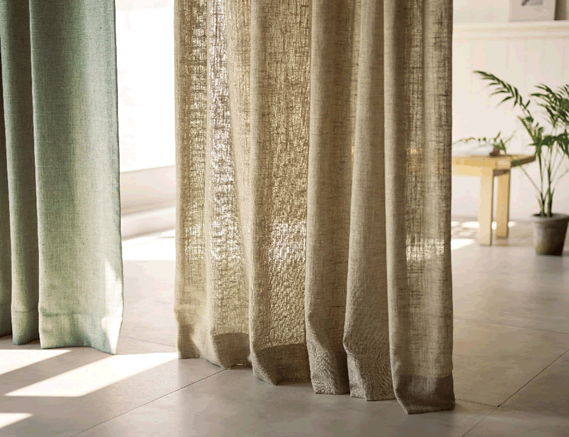 太めのざっくりとしたリネンライクのカーテンで重厚感、厚みがありドレープカーテンとして使えます。