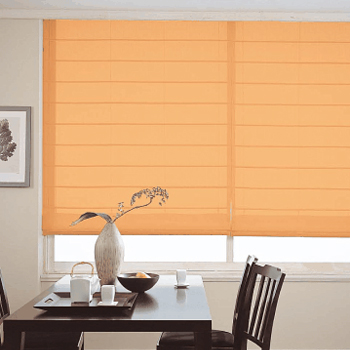シェードを上げると扇状にたたみ上げられ、全部降ろすとフラットになる個性的なデザインです。縦長の窓におすすめのスタイルです。