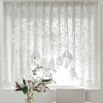 多角の出窓や、連続した小窓におすすめのスタイル。キュートなスタイルの連続が、窓辺にやさしいリズム感を演出します。
