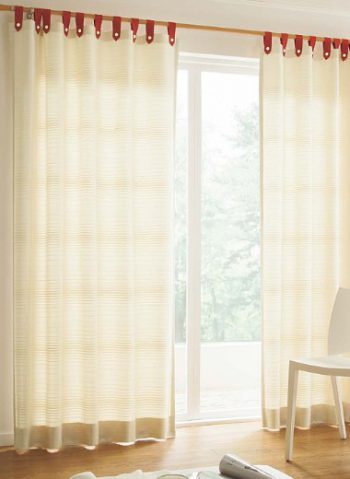 ハンドメイド感たっぷりの優しいカーテンです。タブの裏面はマジックテープ仕様になっています。