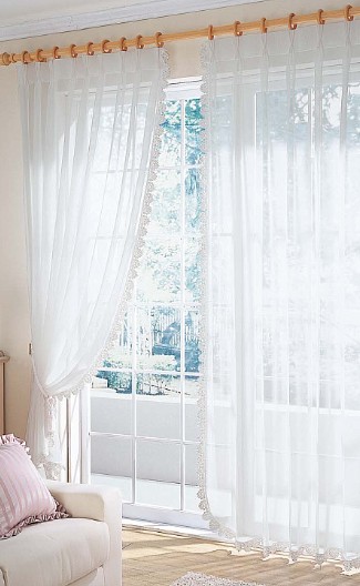 ウッディな装飾レールに似合います。仕上り巾はレールの長さ×1.3×1.5倍を目安とします。